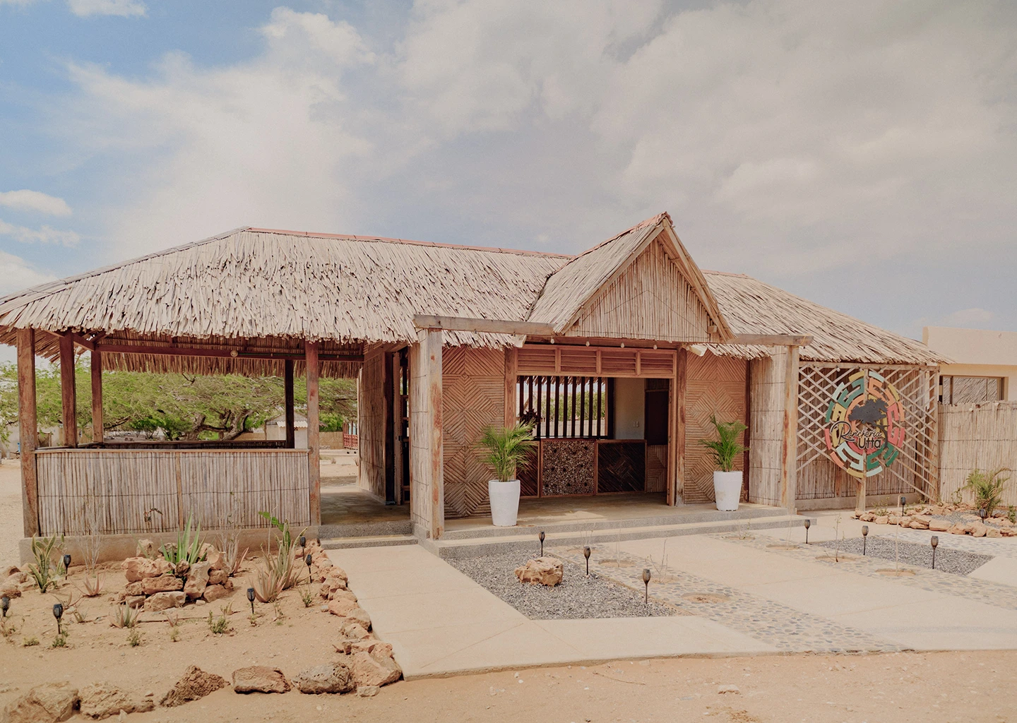 Contamos con capacidad general para 60 visitantes, nuestras cabañas están construidas con el yotojoro (material tradicional extraído del cactus, para la construcción de las viviendas wayuu) cuentan con cama, baño interno y ventilador para garantizar una estadía cómoda.